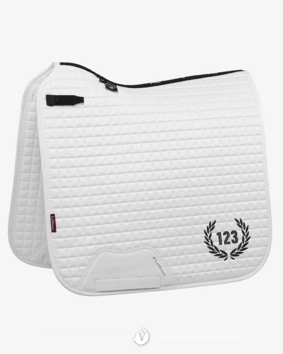 Zadeldekje: Bij een logo met 20.000 steken of meer wordt 1,- extra gerekend per 1.000 steken extra.