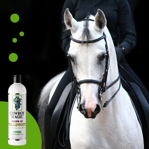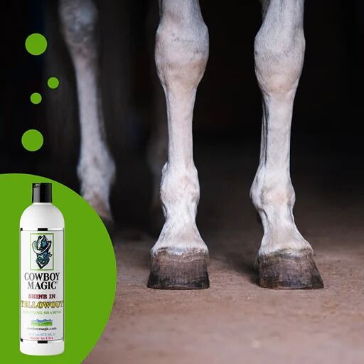 Cowboy Magic® Shine In Yellowout™ neutraliseert gele vlekken en werkt oplichtend voor alle haarkleuren: zwart, wit, kastanje, roodbruin, roodschimmel, palomino of bont. Zowel paarden, honden als mensen hebben baat bij dit product. Shine In Yellowout™ haalt gelige vlekken uit het haar en geeft duffe lokken een mooie fonkeling. Het maakt het haar zijdezacht, geeft glans en zorgt voor een heerlijke geur.