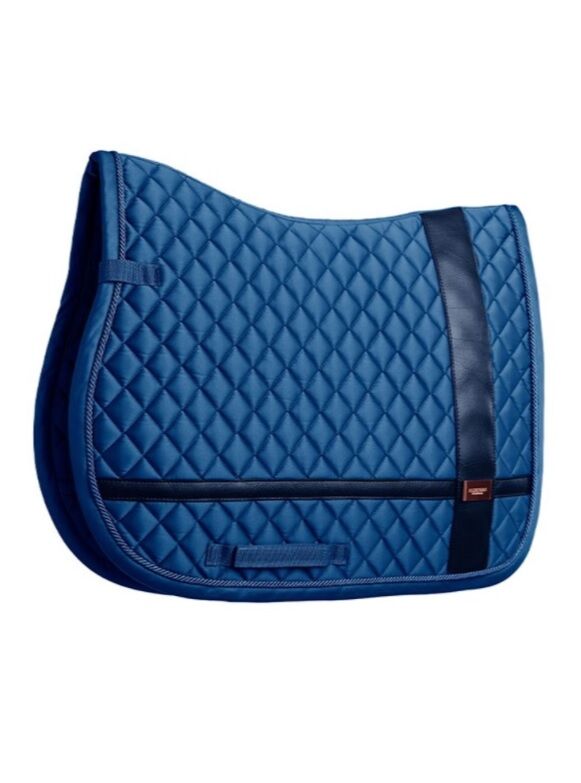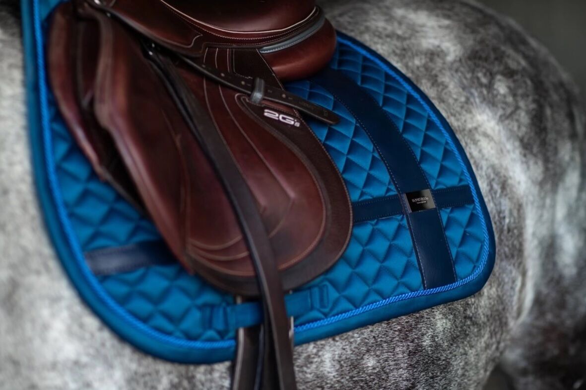 No Boundaries Monaco Blue is het perfecte zadeldek voor iedereen die een exclusief zadeldek met een sportief design wenst. Ontworpen in een luxueus blauw met marineblauwe leren details. Gewatteerd met het stijlvolle Equestrian Stockholm patroon. Vervaardigd van een glanzend, vuilafstotend materiaal dat goed ademt en je paard droog houdt tijdens zweterige sessies. Versierd met een stijlvolle Equestrian Stockholm roségouden badge.