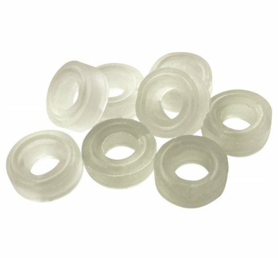 Veiligheidsringen van natuurlijk rubber. Voorkomt ongewenst opengaan van de singelgespen. Set van 8.