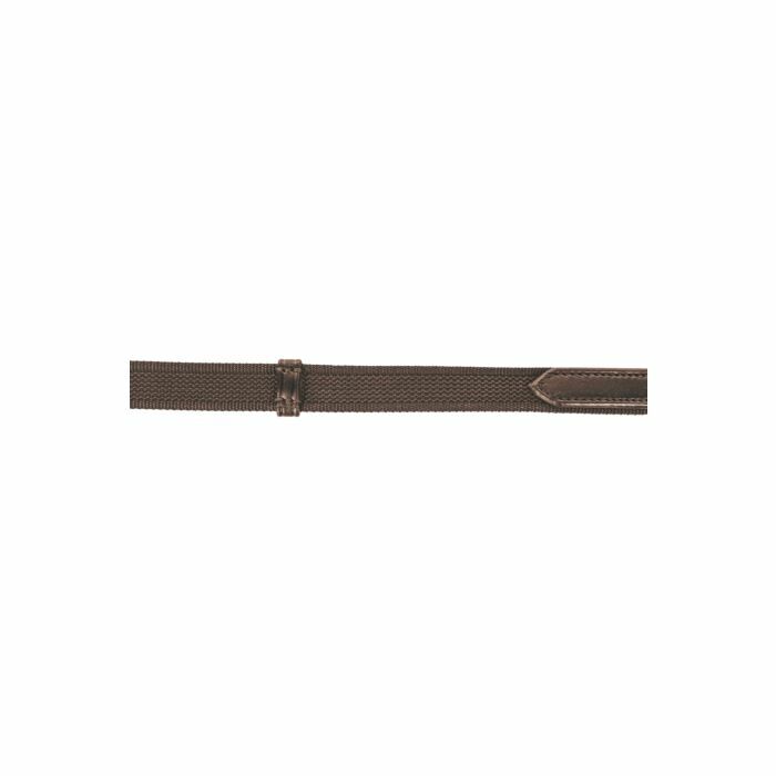 Lederen teugels doorgeweven met rubber met hoofdstelhaken.