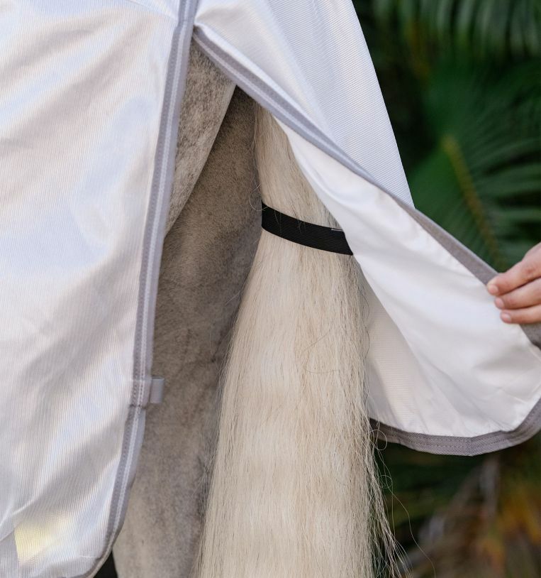 Met achterlussen voor optionele bilriemen is deze vliegendeken een comfortabele en praktische keuze voor dagelijks gebruik tijdens het vliegenseizoen.