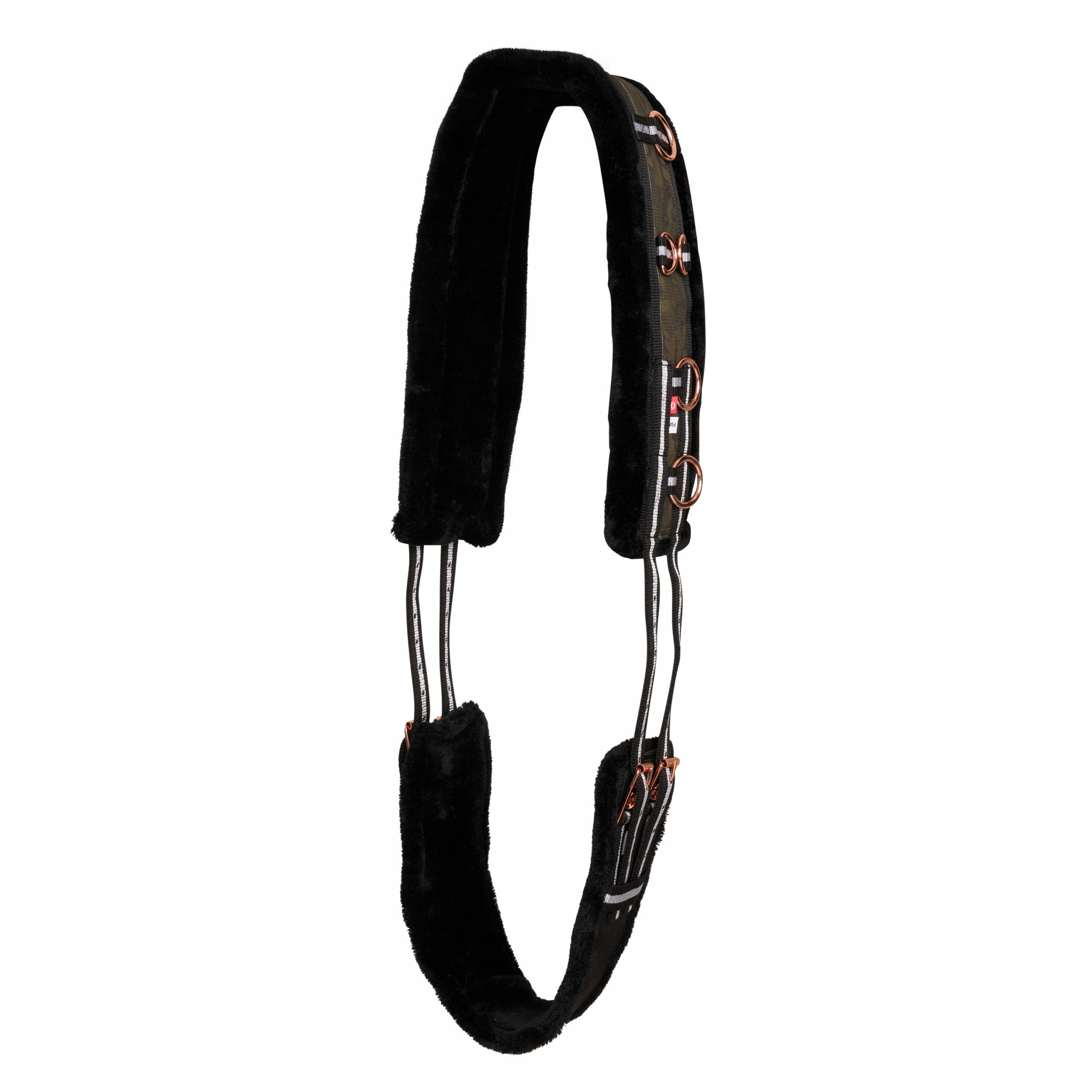 Train je paard in stijl met deze longeersingel, voorzien van een heel glamoureuze camouflageprint en met zacht kunstbont onder de singel en de buiksingel. Deze longeersingel is van hoge kwaliteit, met verschillende soorten sluitingen, waardoor je ook kan trainen met een dubbele singel en bijzetteugels.