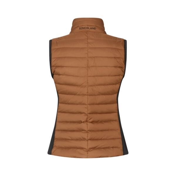 Kingsland Bodywarmer Mona – Arargan OilStap stijlvol én warm de herfst- en winterdagen in met de Mona bodywarmer van Kingsland. In de prachtige, warme tint Argan Oil is dit dé ideale tussenlaag: lichtgewicht én toch heerlijk geïsoleerd, perfect voor elke buitenrit of winterwandeling.Waarom jij ‘m wilt:Blijf droog met DWR C0: Dankzij de milieuvriendelijke waterafstotende behandeling trotseer je zomerse buien en herfstige motregen zonder één druppel binnen te laten.Ademend én winddicht: De Mona houdt koude wind buiten, maar laat je lichaam wél ademen. Geen gesjok met klamme rug, maar frisse energie tijdens elke stap of sprong.Lichtgewicht isolatie: Heerlijk warm, zonder dat je het gevoel hebt dat je een kussen draagt. Ideaal voor koelere dagen, maar ook perfect als extra laag onder jouw favoriete jack.Flexibele softshell-zijpanelen: Deze stretchpanelen bewegen moeiteloos mee tijdens elke galop en sprong, voor ultieme bewegingsvrijheid in het zadel.Glamour in de details: De glitterende Nyguard-rits en de subtiel glinsterende lurex-bies rond de armopeningen geven je outfit dat kleine beetje extra – functioneel én fashionable!Oplossing voor kou en stijlOf je nu vol overgave buiten traint, over het landhuis galoppeert of terraswacht houdt met een warme chocolademelk: de Mona bodywarmer laat je er altijd tiptop uitzien, én je blijft behaaglijk warm.Kenmerken op een rijKleur: Argan Oil (warme, natuurlijke zandtoon)DWR C0 waterafstotendWinddicht en ademendLichtgewicht voeringStretch softshell-zijpanelenGlitter Nyguard-ritsLurex-afwerking armopeningenVoeg de Kingsland Mona bodywarmer in Argan Oil vandaag nog toe aan je winkelwagen en geniet van ultiem comfort met een vleugje glamour!