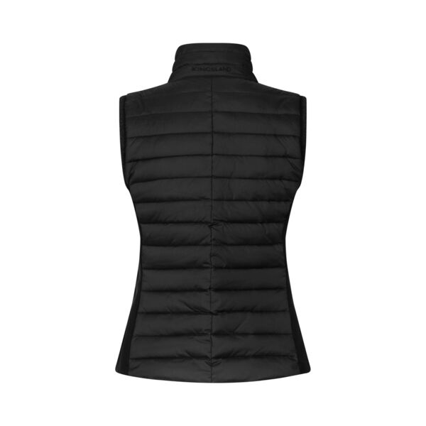 Kingsland Bodywarmer Mona – ZwartEen onmisbare must-have voor je herfst- en wintergarderobe: de Mona bodywarmer van Kingsland in klassiek zwart. Deze lichtgewicht, geïsoleerde bodywarmer geeft je niet alleen warmte, maar ook een tijdloze, elegante look – ideaal voor elk buitenavontuur en iedere buitenrit.Waarom de Mona in zwart jouw nieuwe favoriet wordt:Blijf droog met DWR C0: De milieuvriendelijke waterafstotende behandeling zorgt dat motregen en herfstbuien je niet deren.Winddicht én ademend: Koude wind blijft buiten, terwijl de bodywarmer toch ventileert. Zo blijf je fris tijdens intensieve bewegingen of ontspannen buitenplezier.Lichtgewicht isolatie: Heerlijk warm zonder bulk – perfect als tussenlaag op koelere dagen of als extra warmte onder een jas.Stretchy softshell-zijpanelen: De flexibele zijpanelen volgen elke beweging mee in het zadel, voor optimale bewegingsvrijheid tijdens het rijden.Glamour in detail: De glitterende Nyguard-rits in het midden en de subtiele lurex-afwerking rondom de armopeningen geven een verfijnde, sprankelende touch aan je uitrusting.Tijdloze styling en functionaliteitOf je nu een frisse bosrit maakt, een rondje door de polder wandelt of gewoon geniet van een warme chocomel op het terras: in zwart combineert de Mona bodywarmer moeiteloos met al je rijbroeken, jassen en accessoires, terwijl je comfortabel warm blijft.Belangrijkste kenmerkenKleur: Zwart (klassiek en veelzijdig)DWR C0 waterafstotendWinddicht & ademendLichtgewicht isolatieStretch softshell-zijpanelenGlitter Nyguard-ritsLurex-afwerking armopeningenVoeg de Kingsland Mona bodywarmer in zwart vandaag nog toe aan je collectie én winkelwagen – voor stijl, comfort én warmte in één!