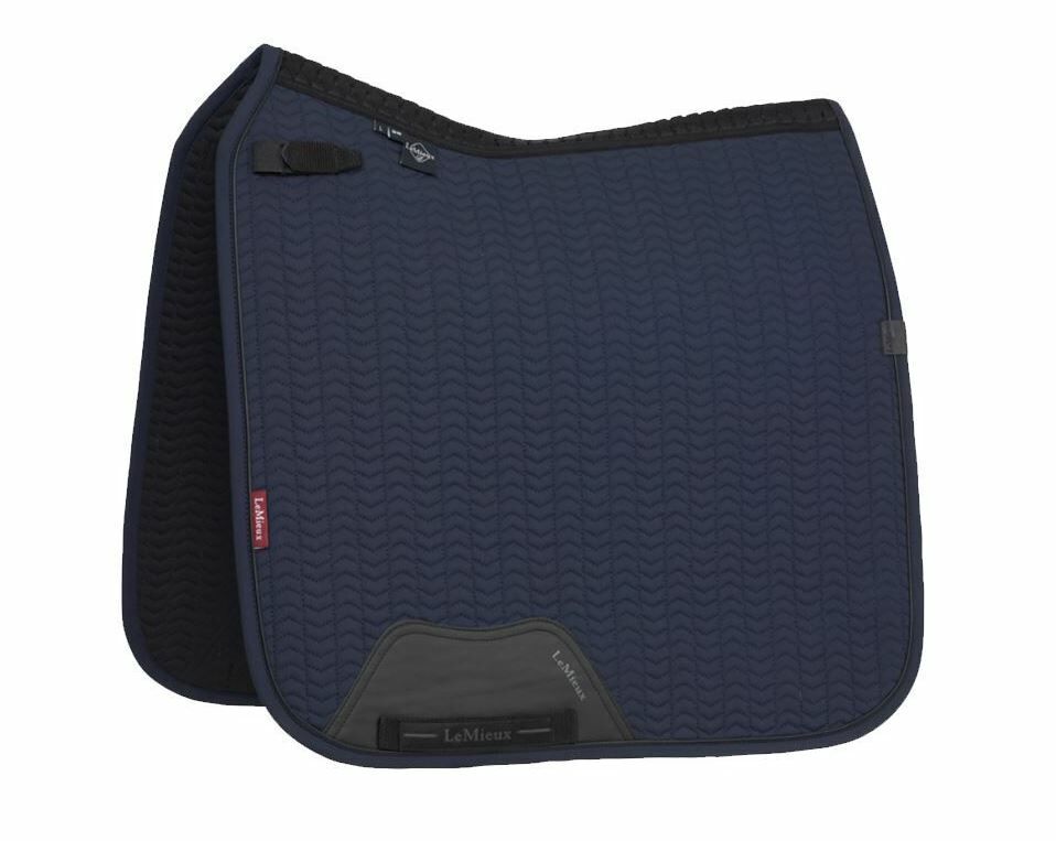 Het LeMieux Dressuur Zadeldek Essence in de kleur Navy combineert stijl met praktische eigenschappen en is speciaal ontworpen voor de veeleisende dressuurruiter. Dit zadeldek is gemaakt van hoogwaardige materialen die zowel duurzaamheid als optimaal comfort voor uw paard bieden.