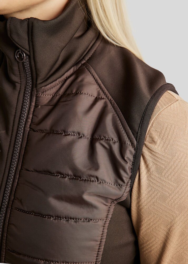 De Emma bodywarmer biedt de perfecte combinatie van elegantie, comfort en bewegingsvrijheid, ideaal voor ruiters in de stal en te paard.