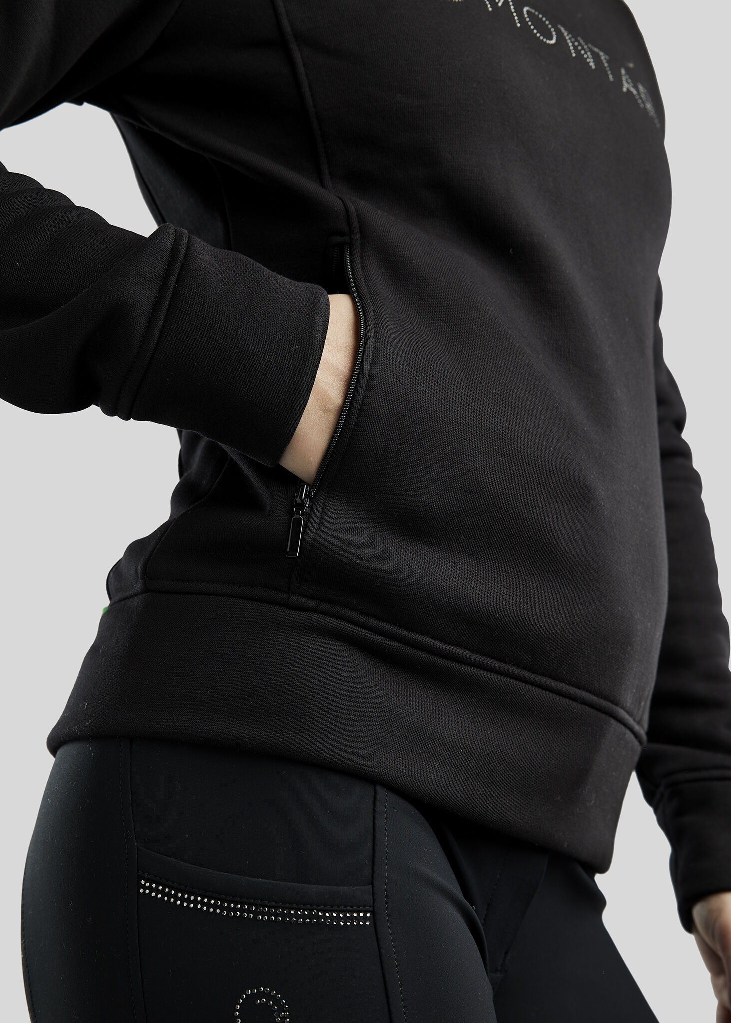De MoNaja sweatshirt is een elegante keuze die stijl en functionaliteit perfect combineert. De prachtige gunmetal kristaldetails voegen een luxueuze uitstraling toe, terwijl de praktische half-rits en ritszakken zowel de stijl als de bruikbaarheid verbeteren.