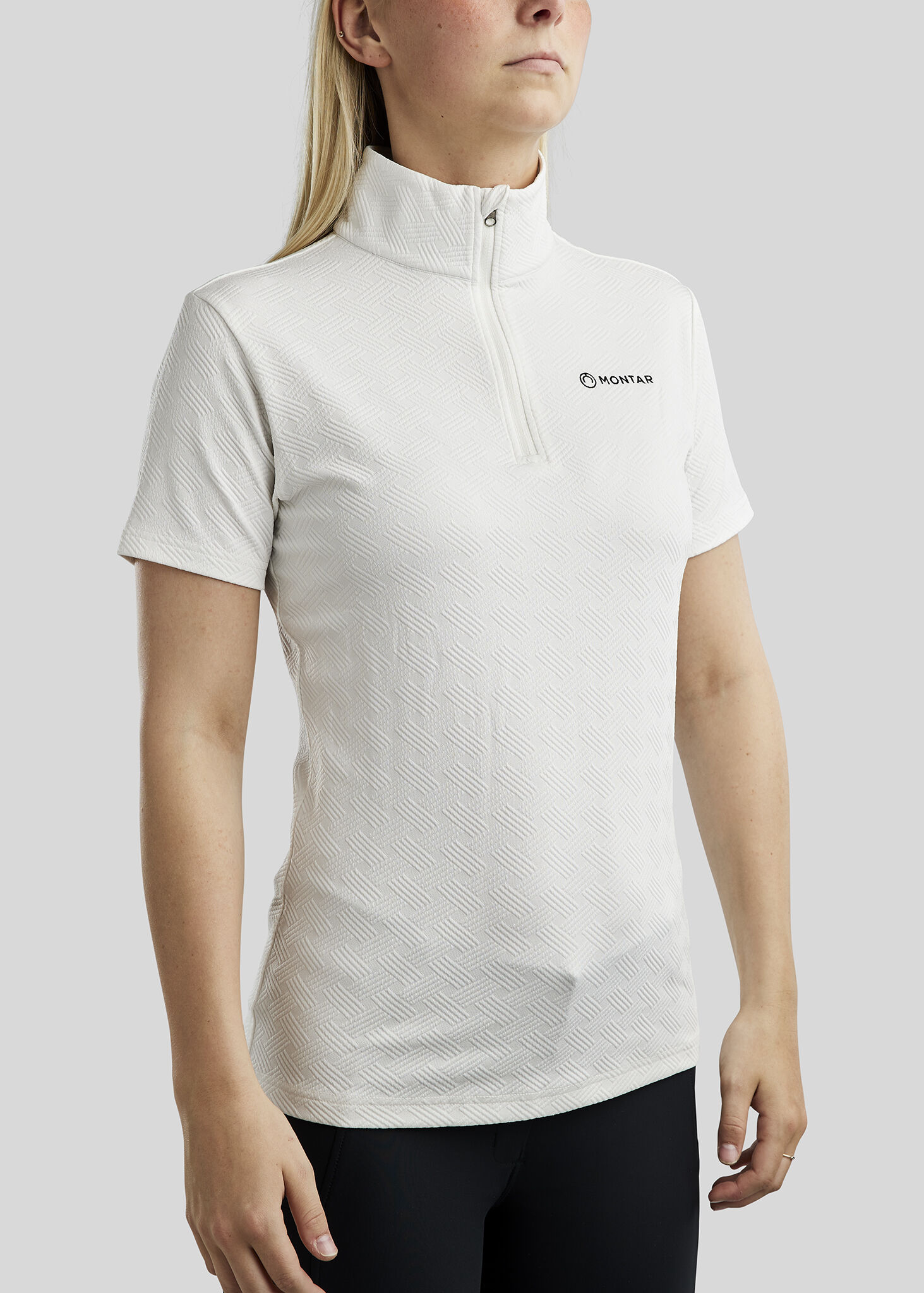 Dit witte Montar trainingsshirt is ideaal voor zowel trainingen als casual ruitersportkleding. Combineer het met je favoriete rijbroek en straal stijl en professionaliteit uit!
