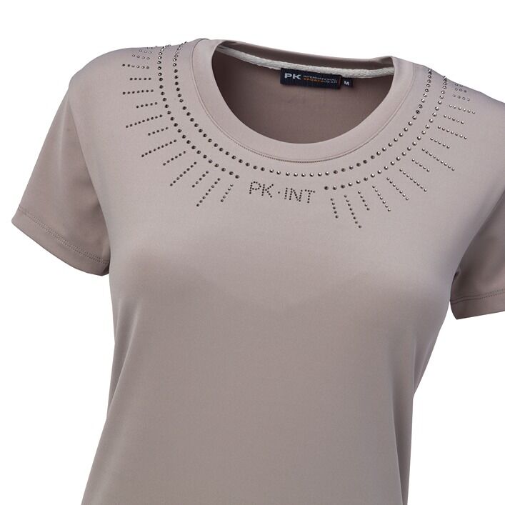 Het PK International T-Shirt met strass detail is een stijlvolle en comfortabele basic die perfect past bij zowel ruitersportactiviteiten als dagelijkse outfits.