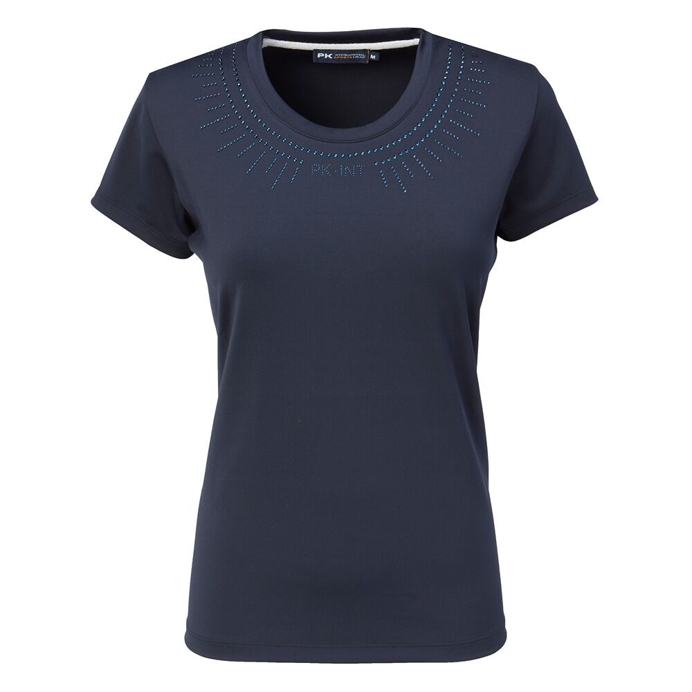 Het PK International T-Shirt met strass detail is een stijlvolle en comfortabele basic die perfect past bij zowel ruitersportactiviteiten als dagelijkse outfits.