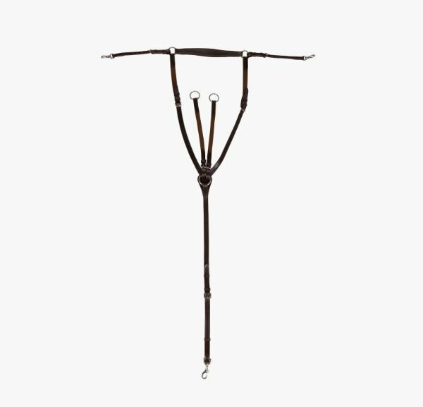 Borsttuig met afneembare martingaalvorken. Een borsttuig voorkomt dat het zadel naar achteren schuift, bijvoorbeeld tijdens het springen. Eenvoudig aan de singel te bevestigen met een musketon en verstelbaar op verschillende punten. Het borsttuig is voorzien van elastiek voor betere bewegingsvrijheid.
