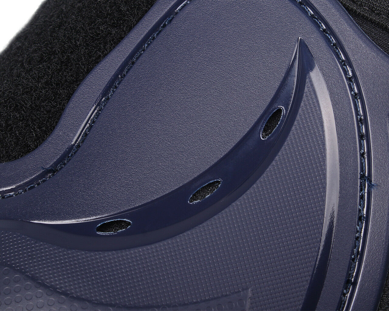Bescherm de achterbenen van jouw paard tegen aantikken met deze sportieve strijklappen. Door de speciale airflow neopreen voering wordt warmte en vocht goed afgevoerd. Daarnaast zorgen de luchtgaten in de schaal bij de pezen ervoor dat de benen niet te warm worden. De beschermers zijn gemakkelijk te bevestigen met de elastische snelsluitingen.