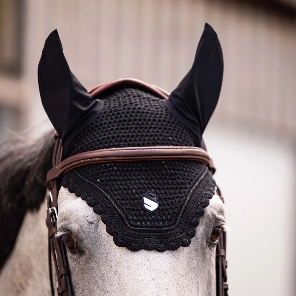 Ontworpen in dezelfde geest als de technische uitrusting van Samshield, combineren Fly-sluiers bescherming, comfort en discrete verfijning. Hun anatomische ontwerp zorgt voor perfecte compatibiliteit met moderne hoofddeksels, terwijl ze optimale ondersteuning in actie bieden. Een waar stuk ruiterelegantie, ze onderscheiden zich door hun minutieuze afwerking en het Samshield-logo versierd met Swarovski-kristallen, delicaat geplaatst op de voorkant.